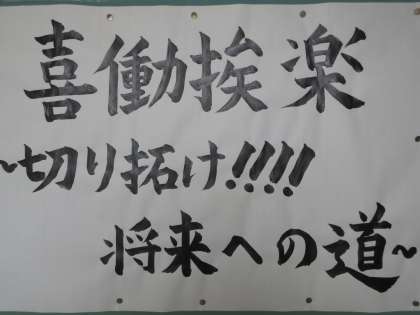 14歳の挑戦の学年目標は「喜働挨楽 〜切り拓け!!!!将来への道〜 」です。働くことにやりがいや喜びを感じるとともに、挨拶等のマナーを意識し、楽しく活動したいと考えています。この活動を将来への道を考えるきっかけにしていきたいです。