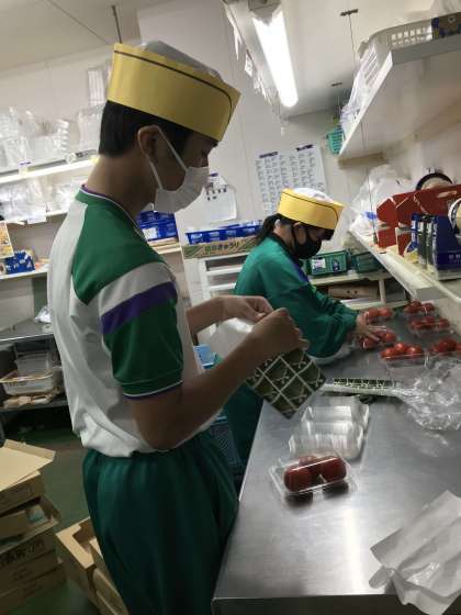 「社会に学ぶ『14歳の挑戦』」その13 公開日 2022/07/05 更新日 2022/07/05 14歳の挑戦 大阪屋ショップ 上飯野店での活動です。 丁寧に商品を運んだり、トマトのパック詰めをしたりしています。たくさん買ってくれるといいな。