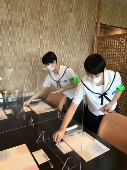 「社会に学ぶ『14歳の挑戦』」その12 公開日 2022/07/05 更新日 2022/07/05 14歳の挑戦 富山電気ビルレストラン県民会館店での活動の様子です。 開店前にナイフやフォークをきれいに並べています。もうすぐランチ!忙しくなりそうです。