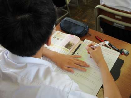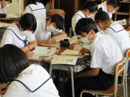 社会の授業です。 「人権はどのように守られてきたのか」を課題に、グループで考えをまとめています。