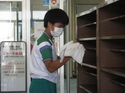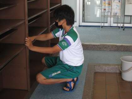 「社会に学ぶ『14歳の挑戦』」その25 公開日 2022/07/06 更新日 2022/07/06 14歳の挑戦 東富山温水プールでの活動の様子です。利用者の方が気持ちよく利用できるよう、開館までに丁寧に掃除をしました。
