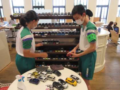 「社会に学ぶ『14歳の挑戦』」その28 公開日 2022/07/06 更新日 2022/07/06 14歳の挑戦 ネッツトヨタ富山株式会社での活動の様子です。 店内のモデルカーの棚をきれいにしていました。 消毒もして、ピカピカになっていました。