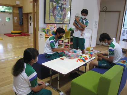 「社会に学ぶ『14歳の挑戦」」 その29 公開日 2022/07/07 更新日 2022/07/07 14歳の挑戦 北部児童館では、赤ちゃんを連れて来訪されたママさんから幼児のお世話を依頼されていました。世話が上手で、赤ちゃんは安心してねんねしました。ブロックで飛行機、折り紙で金魚等もつくりました。優しくゆったりとした時間が流れていました。