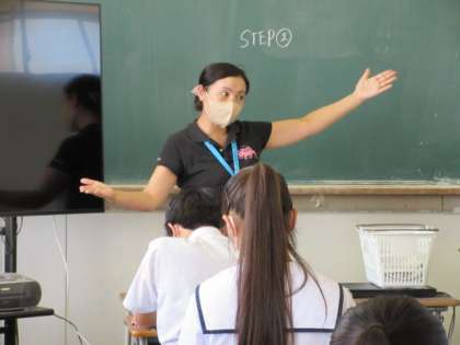 英語の授業です。 講演を聴き取って、質問の答えを考えています。