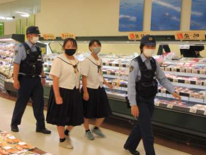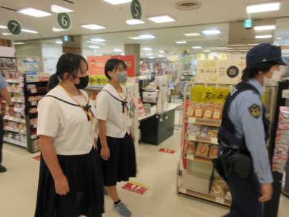 「社会に学ぶ『14歳の挑戦』」その44 公開日 2022/07/07 更新日 2022/07/07 14歳の挑戦 中央警察署での活動の様子です。 警察官の方と一緒にスーパー店内を見回りました。 私たち市民の安全を守ってくださっています。感謝です。