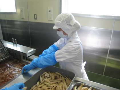 野菜の下処理やフライヤーを担当しました。給食のわかさぎフリッターは、さくさくでおいしかったです。おいしい給食をありがとう!
