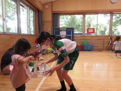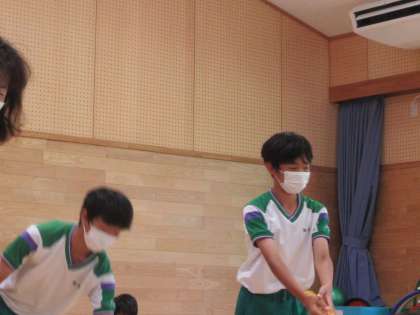 「社会に学ぶ『14歳の挑戦』」 その54 公開日 2022/07/08 更新日 2022/07/08 14歳の挑戦 社会福祉法人 富山市社会福祉事業団 富山市立北部児童館での活動の様子です。 子供たちと一緒にダンスを踊ったり、ハンドベルで合奏をしたりしました。 お兄さん「ほーら、バナナ食べちゃうぞー」 お姉さん「ハンドベルもらうよー」