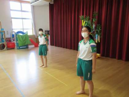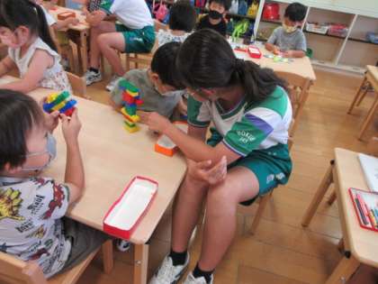 「社会に学ぶ『14歳の挑戦』」 その57 公開日 2022/07/08 更新日 2022/07/08 14歳の挑戦 おおひろたこども園の活動の様子です。 プール前の準備体操を見守ったり、折り紙をしたりしていました。 園児とふれあう様子がとても楽しそうでした。
