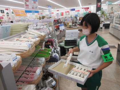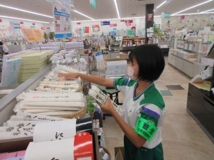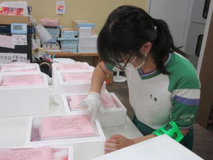 「社会に学ぶ『14歳の挑戦』」 その59 公開日 2022/07/08 更新日 2022/07/09 14歳の挑戦 サンエツでの活動の様子です。 ギフト用の麺やアイスクリームの箱詰め作業をしていました。店頭に並ぶ商品になるので、生徒の緊張が伝わってきます。