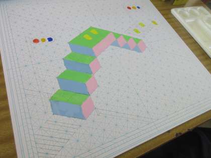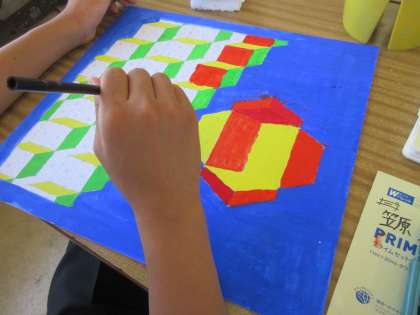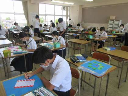 美術の授業です。 デザインの色付けが、ほぼ仕上がってきました。