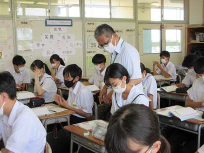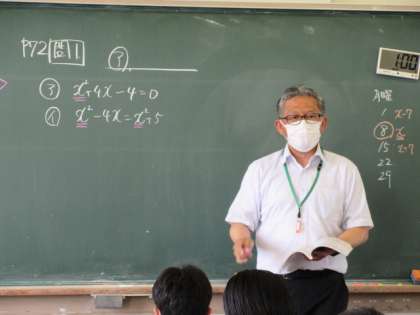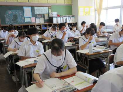 数学の授業です。 習ったことを振り返りながら、教科書の問題を解いています。