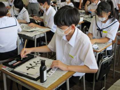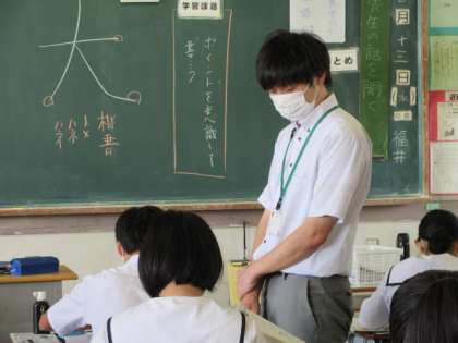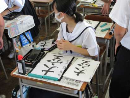 国語の授業です。 手本を見ながら、一筆一筆を丁寧に書きました。