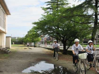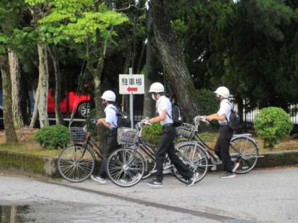 生徒は、今日も元気に登校しています!! 自転車小屋の自転車も、きれいに整頓されています!!