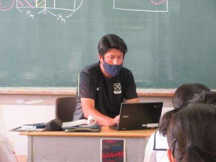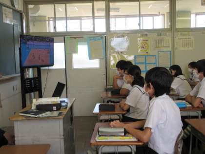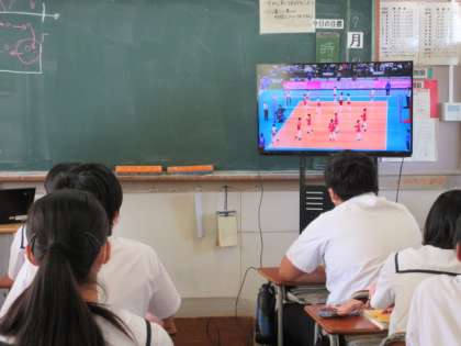 バレーボールの動画を見て、ローテーションの仕方を確認しています。