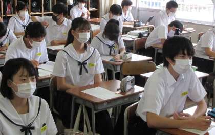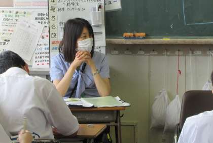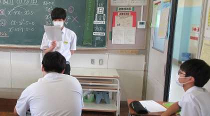 総合的な学習の時間です。 修学旅行のルールを確認しています。