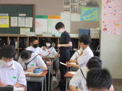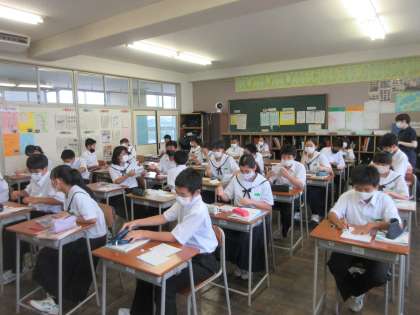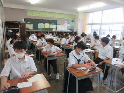 国語の授業です。 毎時間の積み重ね、漢字テストです。満点者は・・・。