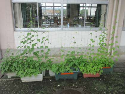 夏の代表、「アサガオ」と「ひまわり」!! どんどん伸びてます!!
