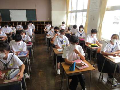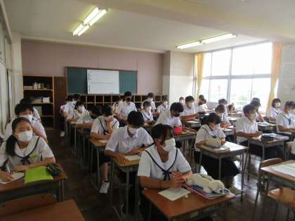 英語の授業です。 人に〜してもらいたい want+人+to動詞を復習しました。