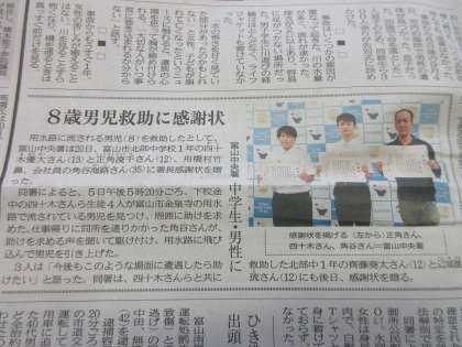 先日の人命救助に対して、昨日、富山中央署から感謝状をいただきました。