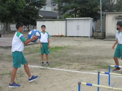 ラダーやメデシィンボールを使ってトレーニング中です。