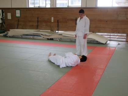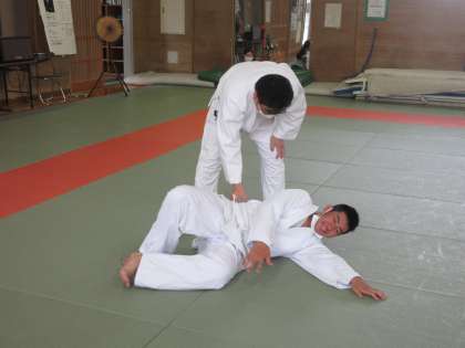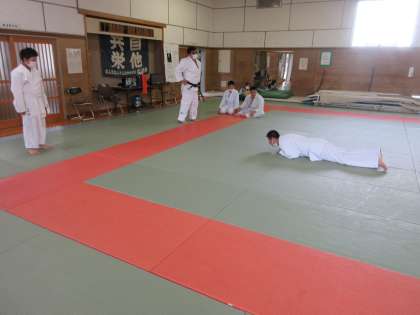 寝技をかけられたときの逃げ方「エビ」の練習です。