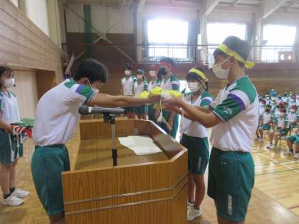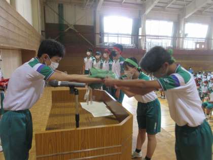 実行委員長から、各団長に団旗を手渡しました。 悍虎団と昇龍団です。