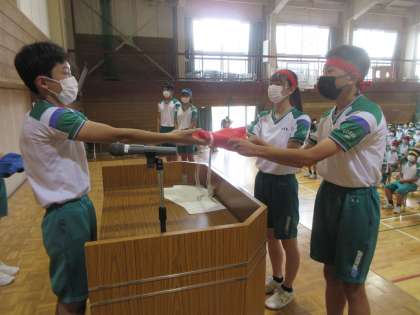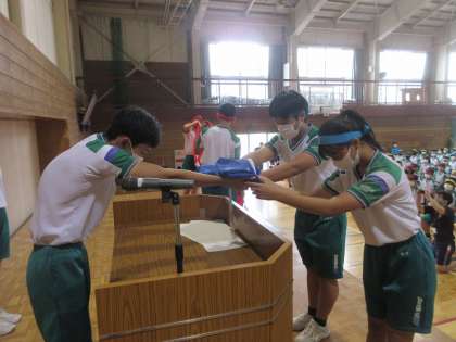 体育大会結団式(その6) 公開日 2022/08/10 更新日 2022/08/10 北中NEWS 跳鯉団と鋭鷲団です。 「よろしくお願いします!!」「はい、頑張ります!!」 今日から、体育大会に向けて活動がスタートします!!