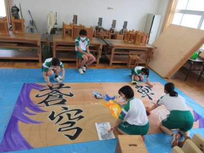 体育大会に向けて 公開日 2022/08/17 更新日 2022/08/17 北中NEWS 今日から、2年生も作業に参加しました。3年生のアドバイスどおりに、色塗り開始です。 青龍団と跳鯉団の様子です。