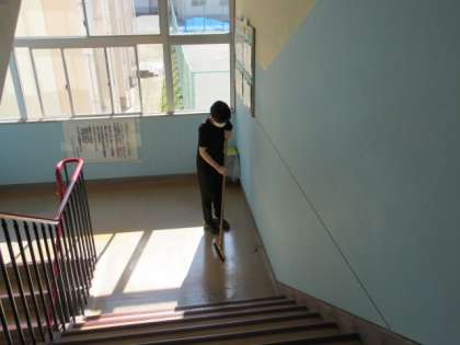 週の始まりも、清掃から。 今週は、各学年の登校日があります。元気なみなさんと会えるのを楽しみにしています。