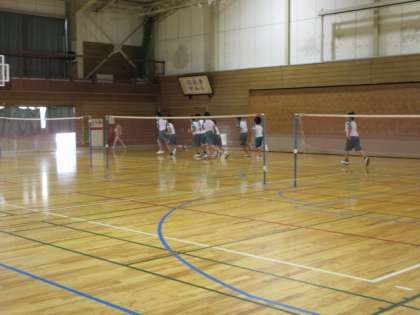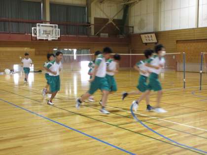 男子バドミントン部です。 インターバルトレーニング中でした。体力アップできそうです。 頑張れ!