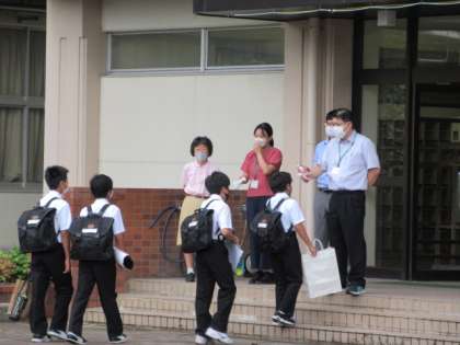 おはようございます!!8月24日(水) 公開日 2022/08/24 更新日 2022/08/24 北中NEWS 朝から涼しい風が校舎を横切っていきます。 本日は、1年生と2年生の学年登校日となっています。 教室に明かりが灯り、活気が戻っています。