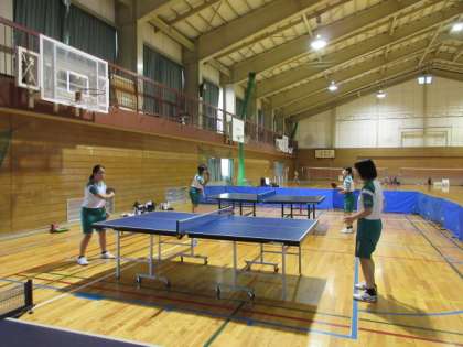 男女卓球部です。 基礎打ち練習中です。リズムよく打ち合っていました。