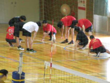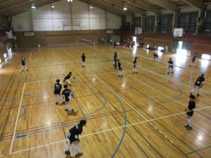 体育館、本日最後は男女バレーボール部の活動です。 ボールを操る音と、部員の声が響きます。
