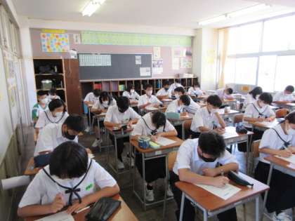 学級活動 1学年 公開日 2022/08/29 更新日 2022/08/29 第1学年 本日から2学期が始まりました。 夏休みを振り返るプリントや、2学期の目標を書きました。 充実した夏休みが過ごせましたか? それぞれ目標達成に向けて、新たに気を引き締めてがんばりましょう。