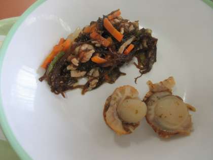 今日の給食 公開日 2022/08/30 更新日 2022/08/30 給食 2学期の給食がスタートしました。 たくさん食べて、元気100倍です!! ごはん 牛乳 ほたての香味焼き もずくのチャプチェ ごまけんちん 黒糖大豆