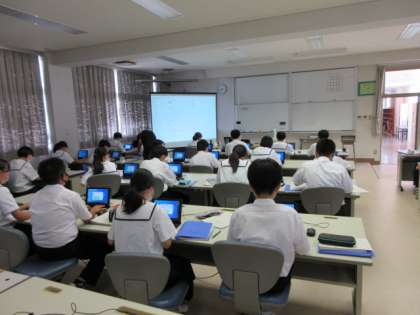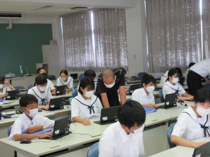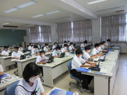 技術・家庭科の授業です。 コンピュータ室で、タイピングの練習です。 集中して取り組んでいます。