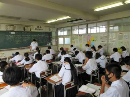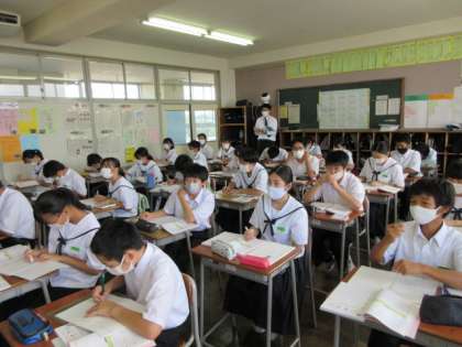 数学の授業です。 1次式の加法と減法の計算練習をしました。