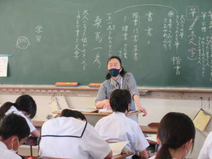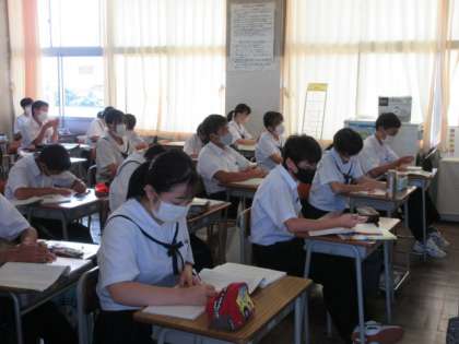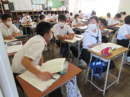 国語の授業です。 「え?今の何だって?」「こうじゃない?」 分からないときは、周りの友達に聞いて、解決。
