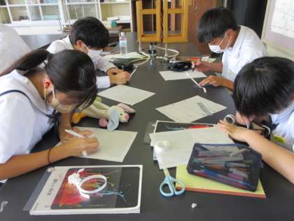 3−4 公開日 2022/08/31 更新日 2022/08/31 北中NEWS 理科の授業です。 物体の運動の実験レポート作成中。頭、手先、はさみ、のり、定規、集中力等々たくさんのものを使って活動しています。
