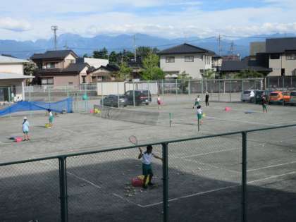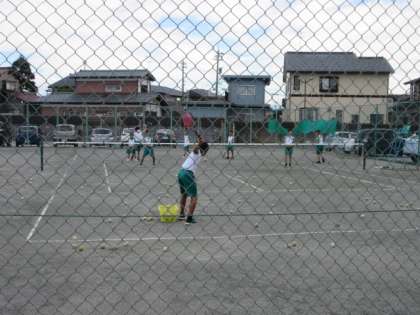 テニスコートでも、暑さに負けず男女共元気に活動しています。