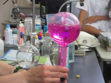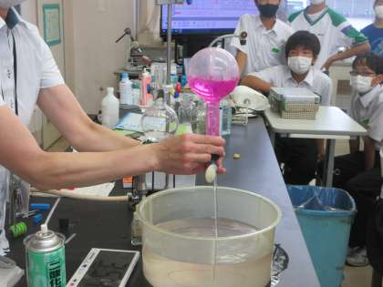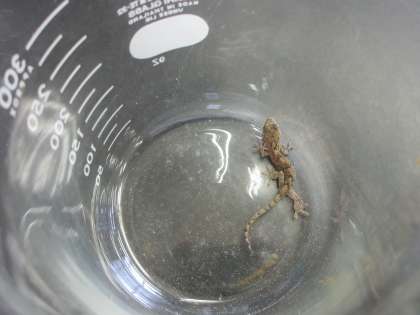 1−1(その3) 公開日 2022/09/01 更新日 2022/09/01 第1学年 「フラスコにアンモニアを集めました。さあ、よく見ていてよ!!」 「わ〜、ピンク色になったぁ!!」 「噴水だぁ!!」 理科室にいた「やもり」です。