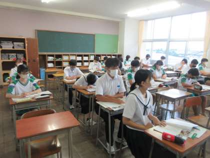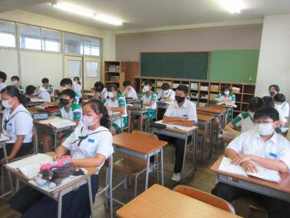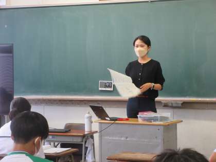 英語の授業です。 「朝美の職業体験」について学習しました。