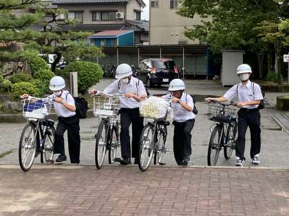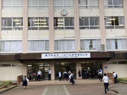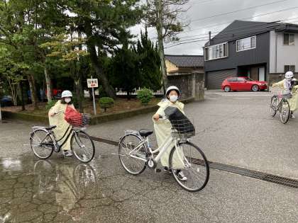 「雨ニモマケズ…」 生徒は元気に登校しています。