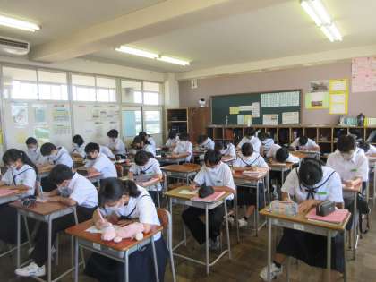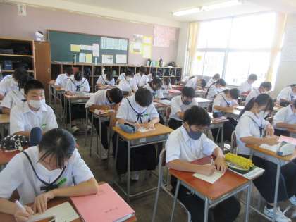 英語の授業です。 まずは単語小テスト、積み重ねが大切です!!