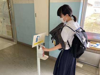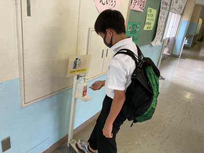 教室に入る前には、消毒!!消毒!!