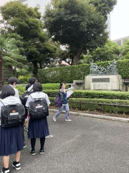 横網町公園で、ガイドさんの説明を聞きながら周りました。
