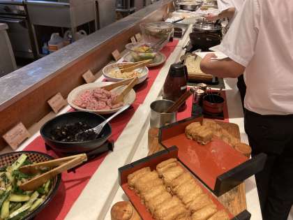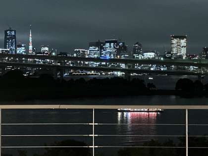 夕食です。お台場の、夜景がきれいな会場です。