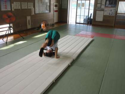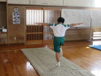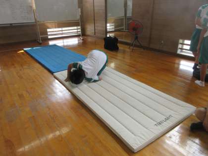 まずは、W-UPで、後転からの前転、そしてポーズ!を練習しました。