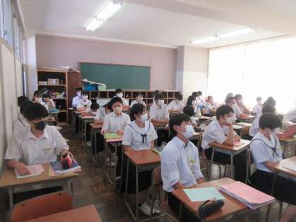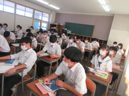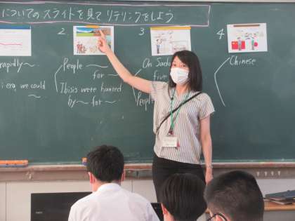 英語の授業です。 トキについてのスライドを見て、リテリングしました。