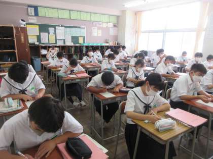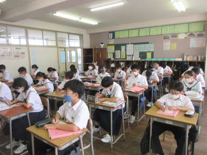 英語の授業です。 単語テストです。確実に覚えていきましょう!!